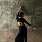 植萃高織 ~ 美背開衩緊塑貼身洋裝 - 曜石黑
