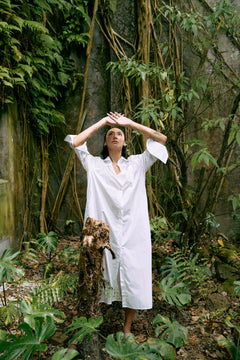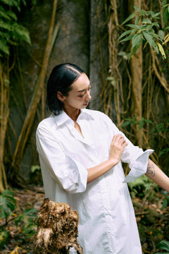 植萃高織 ~ 男友風慵懶襯衫洋裝 - 極光白
