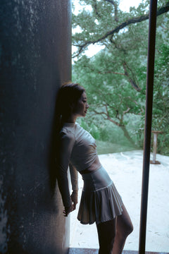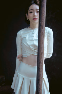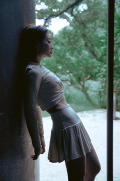 細緻百褶在水波間自然飄動,兼具修飾與優雅。裙襬下隱藏安全褲設計,讓妳自在活動同時保有輕盈飄逸感。高腰剪裁拉長比例,完美平衡甜美氣質與實穿機能。
